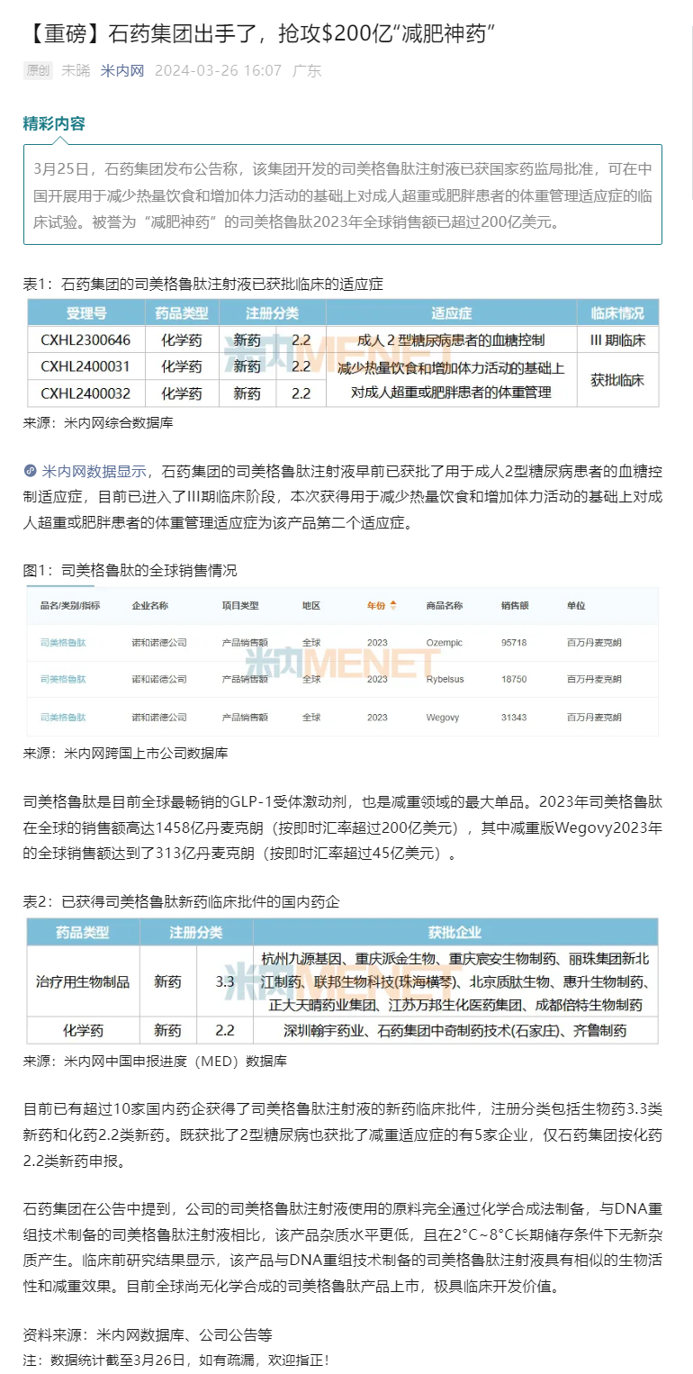 石藥集團(tuán)「司美格魯肽」獲批減重臨床