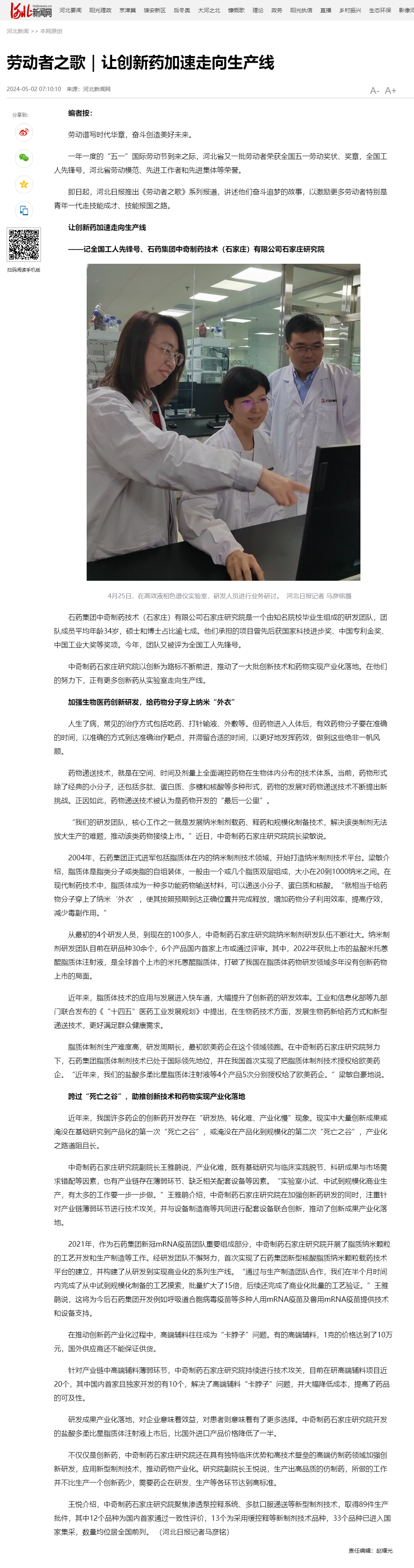 勞動(dòng)者之歌|讓創(chuàng)新藥加速走向生產(chǎn)線——記全國工人先鋒號(hào)、石藥集團(tuán)中奇制藥技術(shù)(石家莊)有限公司石家莊研究院